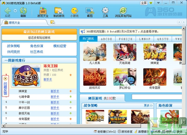 360游戏浏览器是一款专业为游戏而设计的浏览器,浏览器为用户提供权威全面的网页游戏库。针对游戏特别设计的一些功能设计如拦截广告、网页加速、游戏加速等。确保玩家良好的游戏体验。