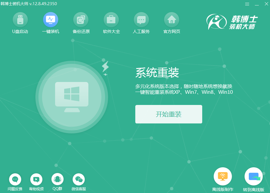 韩博士装机大师是一款装机必备的系统辅助类工具软件,软件界面设计美观简洁,布局非常直观清晰,小白也可轻松操作。软件支持一键自动备份、重装系统和还原系统一站式服务,无需多余操作。