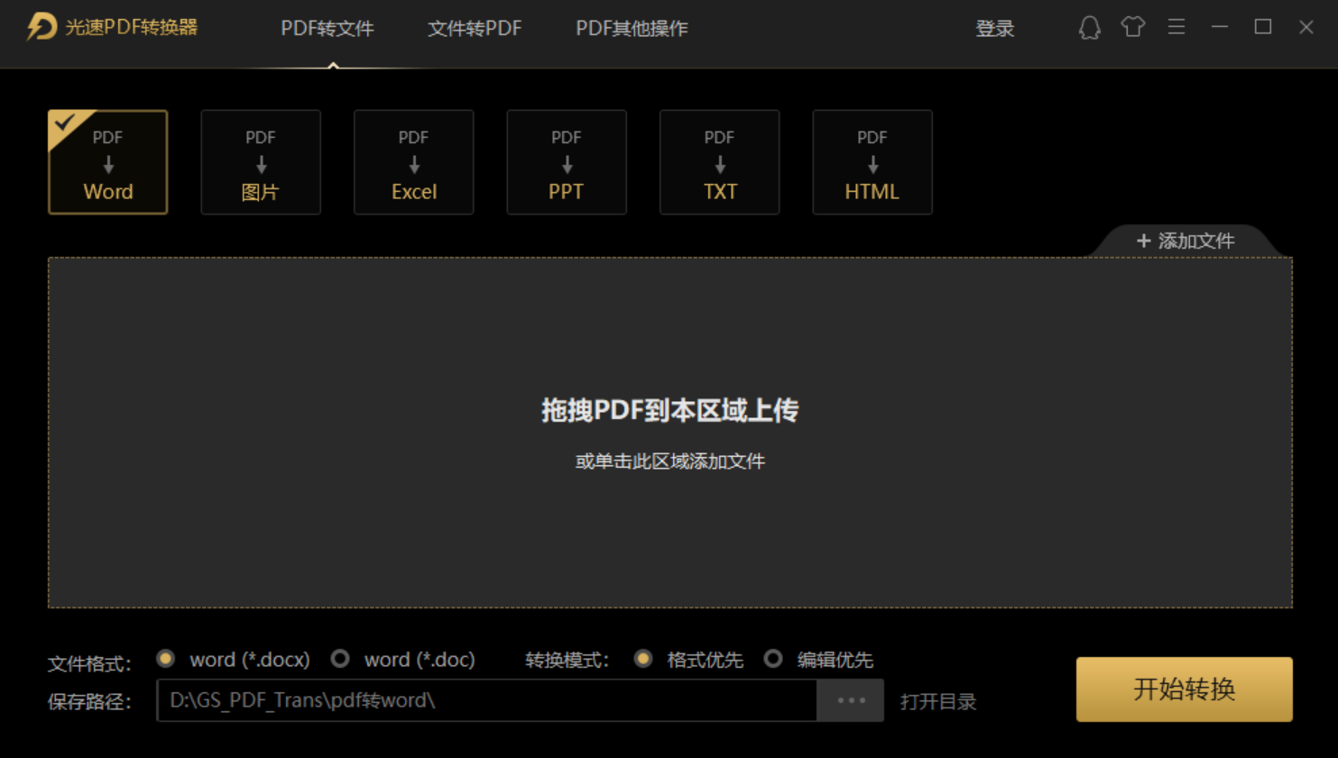 光速PDF转换器是一款专业的转换PDF的工具软件,支持PDF之间的合并,压缩,拆分,提取功能,十分方便快捷。支持PDF,DOC,TXT,PPT和图片等各类文件之间的转换。界面简约,极易上手,是一款不可多得的利器。
