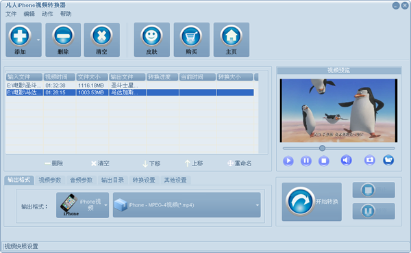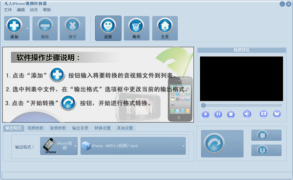 支持将AVI、DivX、H.264、XviD、MP4、MOV、MKV等HD高清格式转换为iphone视频格式。