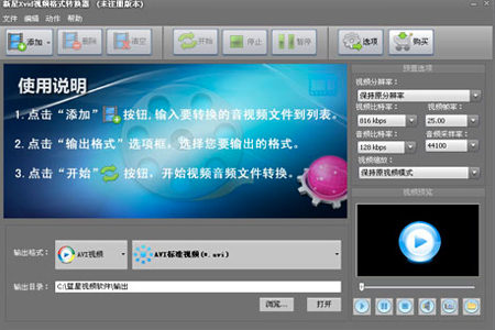 支持高清MTS、M2TS、高清H.264、高清MPG、高清MP4视频同样可以转换为高清的Xvid编码视频。