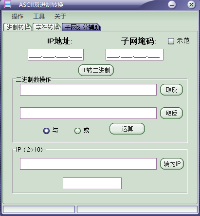 子网划分辅助:即IP地址十进制与二进制的相互转换,以及二进制的与、或、取反操作