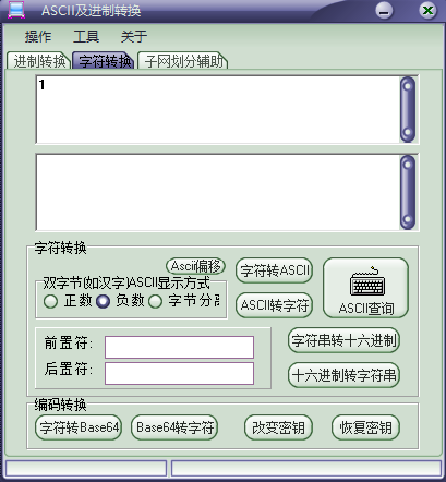 字符转换:字符转换为10进制(ASCII码)并且可偏移ASCII码,及16进制及其逆操作。