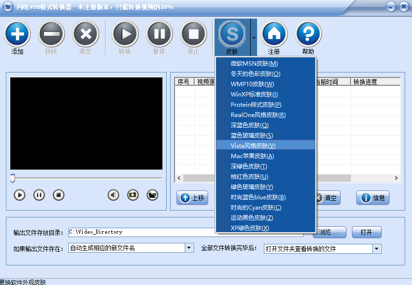 本VOB格式转换器软件操作简单,界面美观,支持更换皮肤。