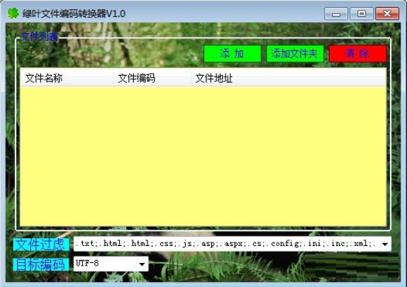 绿叶文件编码转换器是一款专业的编码转换的工具软件,支持常见编码格式如UTF-8、UTF-7、Unicod、ASCII、GB2312、Big5之间的转换。十分方便快捷,界面简约,布局直观清晰,极易上手,是一款不可多得的利器。