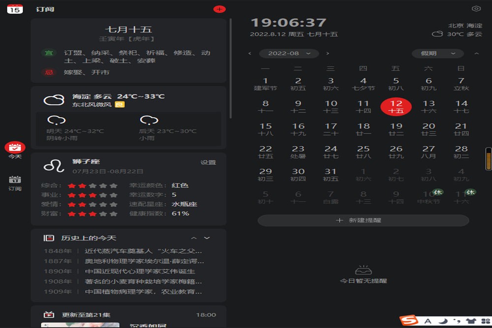 电脑桌面日历软件是帮助用户查询假日信息、安排假期计划和提醒重要日期的软件,帮助你一打开桌面就能查看日期信息,同时还有的会有十分方便的天气、假期、星座运势等实用功能,为你的生活增光添彩,下面就为大家推荐一些电脑桌面日历软件。