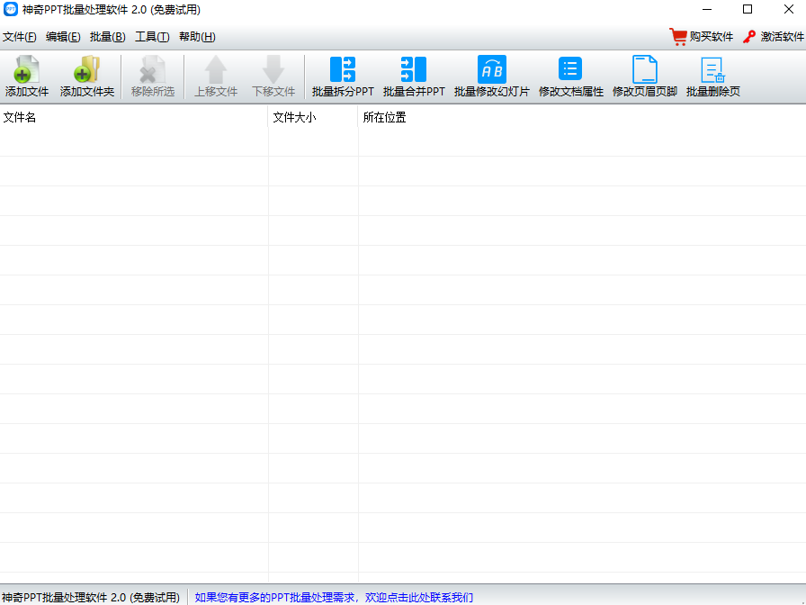 软件中包含功能全部是批量操作。只需导入PPT文件,即可一键批量处理。