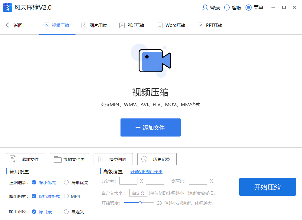 风云压缩官方版支持视频、图片、PDF、Word和PPT压缩,