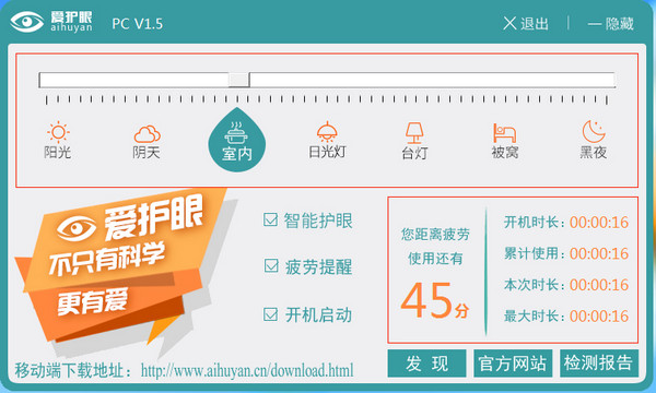 爱护眼是一款专业的保护眼睛的电脑工具软件。软件可以自由调整屏幕的色温和亮度,通过几个档位调整就可以实现快速调整色温和屏幕亮度,十分方便快捷,界面简约,布局直观清晰,操作简单,极易上手,是一款不可多得的利器。