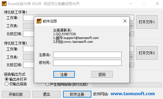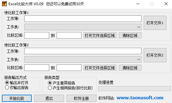 对比同一或不同Excel工作簿中,两个工作表之间的差异,并产生报告。
