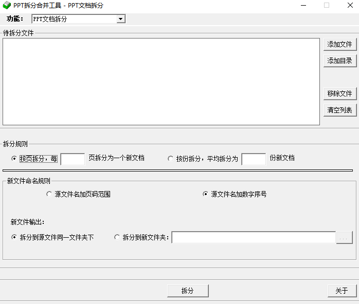提供了对于批量拆分的支持,您可以同时添加多个PPT文件或者文件夹目录进行拆分。