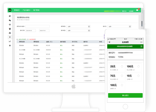 集团化管理:同时管理多个驾校无地域限制条件也可综合统计分析。