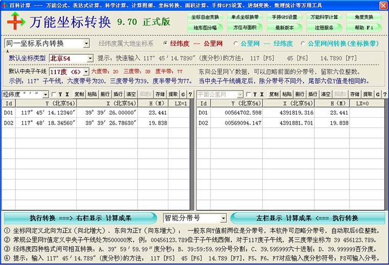 下载万能坐标转换是一款专业的坐标转换的工具软件,软件支持数值计算、表达式计算、复杂的公式计算、积分计算、角度变换等多种功能,十分方便快捷,界面简约,布局直观清晰,操作简单,极易上手,是一款不可多得的利器。