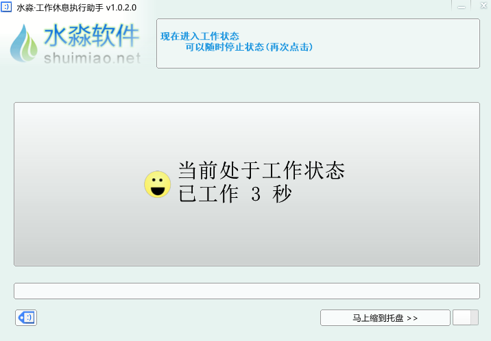 水淼工作休息执行助手是一款专业的时间提醒的工具软件,软件可以有4种状态提醒分别为工作、休息前、休息、工作前,十分方便快捷,界面简约,布局直观清晰,操作简单,极易上手,是一款不可多得的利器。