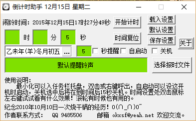倒计时助手是一款专业的桌面倒计时的工具软件,软件支持倒计时后铃声提醒、弹窗提示。支持倒计时关机或开机,十分方便快捷,界面简约,布局直观清晰,操作简单,极易上手,是一款不可多得的利器。