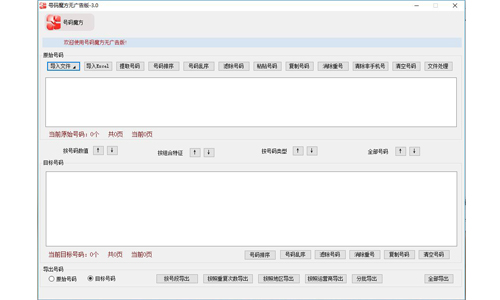 红枫叶号码魔方是一款专业的处理手机号码的软件工具,可以对手机号码数据进行比较、过滤、排序、生成等操作,十分方便快捷,界面简约,布局直观清晰,操作简单,极易上手,是一款不可多得的利器。