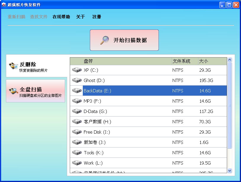 超强照片恢复软件是一款容易使用并且数据恢复能力非常全面的数码相片恢复软件,扫描硬盘和数码相机卡的速度快,目录的恢复图片文件效果比较完整。具有反删除、反格式化、全盘扫描恢复等多种数据恢复能力。支持直接删除或者清空回收站删除的图片文件恢复,也支持全盘扫描相片的功能来恢复被格式化的分区和分区因各种原因损害的情况,数据扫描后按目录结构显示出来,如果文件的文件名信息损坏了,文件内容扫描后会按这个拍摄相机的型号厂商等信息自动分类命名,能清晰的列出各个相片文件,并且有文件的拍摄时间信息,能轻松找到想恢复的相片文件。扫描出来的照片可以预览出内容,在恢复数据前可以判断文件是否能正常恢复。支持JPG图片、Exif图片、NEF文件恢复、CR2文件恢复、SR2文件恢复等各种RAW数码照片的扫描恢复,支持各种数码相机和摄影机拍摄的照片。超强照片恢复软件操作十分简单,数据扫描的效果好而且速度快能省很多时间,是恢复普通相机和单反相机等数码照片的好软件。