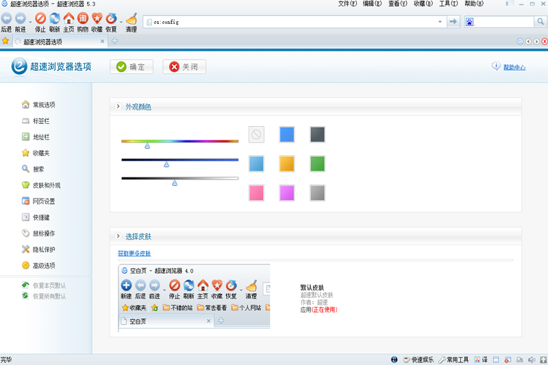 超速浏览器是一款专业的网页浏览器的软件工具,软件支持个性化换肤、鼠标手势和独创的窗口模式。非常方便快捷,软件界面简约,布局直观清晰。操作简单,容易上手,是一款十分实用的工具。