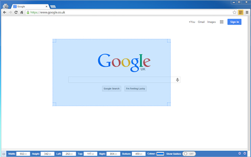拖动鼠标画出一个矩形来选中网页中的待测元素(其中选中的部分会以阴影部分表现出来)。