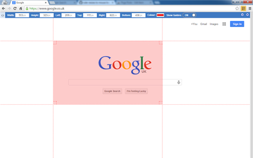 通过屏幕上面的Page Ruler插件工具条来查看当前选中的矩形大小的尺寸信息。