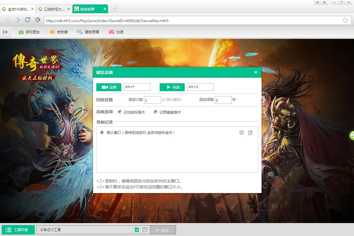 更多连点功能和保持在线请使用键鼠录播的小工具。可自定义配置连点坐标和时间哦