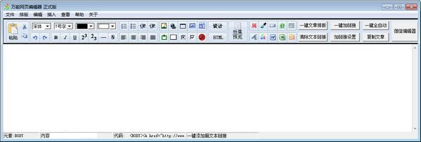 万能网页编辑器(网页编辑工具)是一款简单免费的网页编辑工具,它可以用来制作主页和维护网页,为用户提供了多种代码和文本格式选项来创建和维护网页,适用于网站管理人员来设计网页和管理网页,万能网页编辑器功能简单实用,即使是新手也能很快学会网页编辑,不懂网页标记语言,照样可以轻松制作出自己的网页。