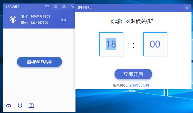 160WiFi电脑版是一款专业的wifi管理的软件工具,软件适合自带无线网卡的电脑使用,你可以在软件上开启热点wifi,让你的其它移动设备连接上网。非常方便快捷,软件界面简约,布局直观清晰。操作简单,容易上手,是一款十分实用的工具。