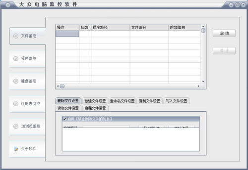 下载大众电脑监控软件是一款专业的电脑监控的软件工具,软件支持文件监控、程序监控、键盘监控、ie浏览器监控等等功能。非常方便快捷,软件界面简约,布局直观清晰。操作简单,容易上手,是一款十分实用的工具。