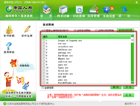 可紧致可开放网络游戏和单机游戏,可设定允许玩游戏的是简单,合理安排孩子玩游戏的时间。避免孩子游戏成瘾,影响正常学习和身体健康。