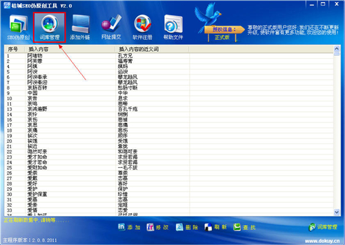 数据库收录近2万条同义词组,自由转换,只需摘取网络文章,系统自动转换,让您的文章独一无二,方便提高搜索率。将文章产生记录,并通过各大搜索引擎自动收录,产生庞大的数据链,以便提高你主域名的权重迅速提高以达到排名提升的目的。把文章进行再加工,使其让搜索引擎认为是一篇原创文章,从而提高网站权重。