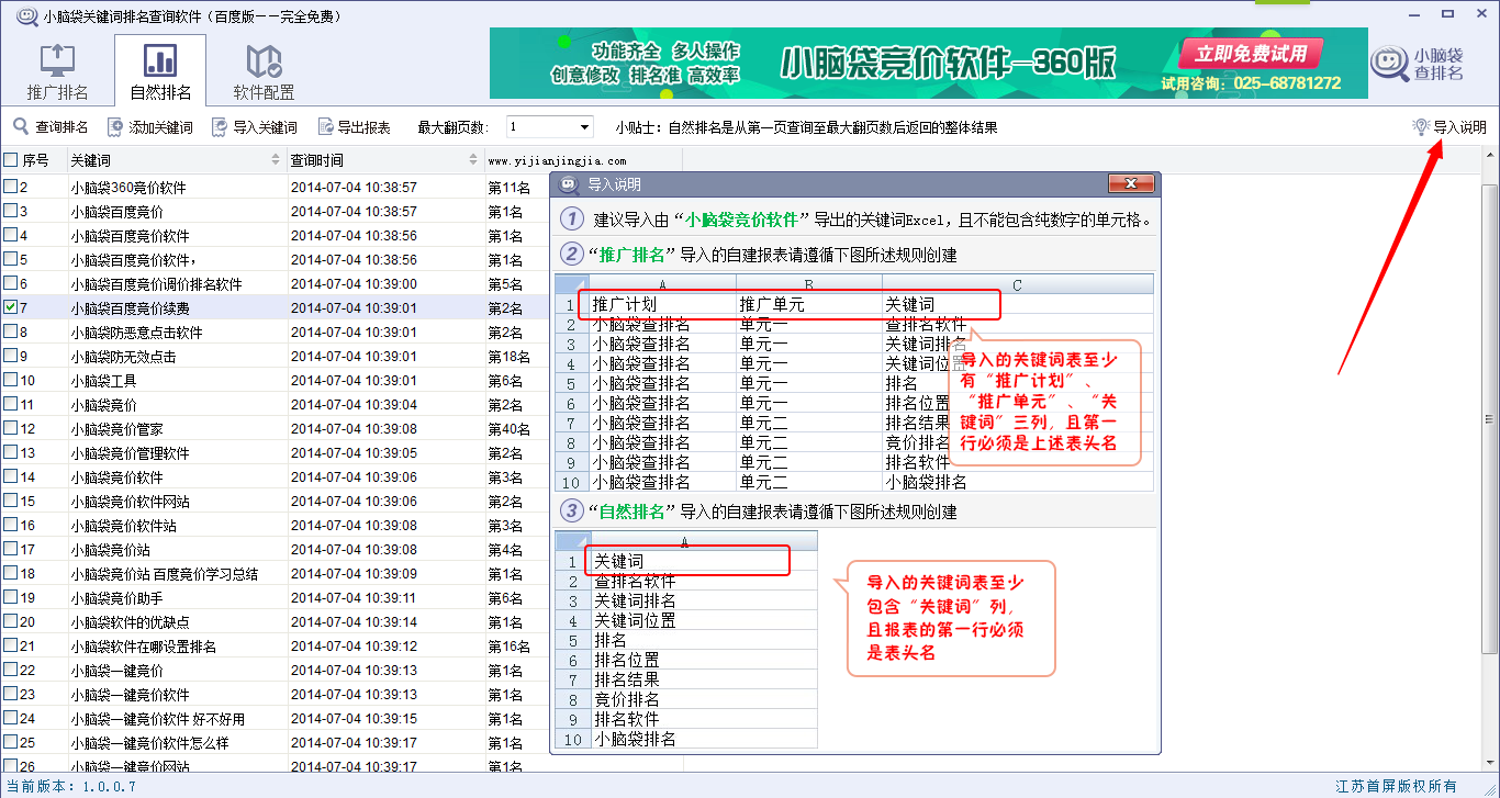 小脑袋关键词排名查询软件是一款专业的关键词排名查询的软件工具,软件支持查看竞价排名、seo优化排名、批量导入关键词等等功能。非常方便快捷,软件界面简约,布局直观清晰。操作简单,容易上手,是一款十分实用的工具。