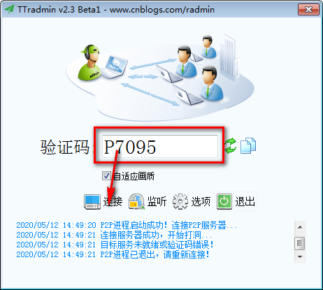 下载打开TTradmin官方版软件,可以看到上面有一个验证码,让被控端发送验证码到你这里,输入对方验证码,点击链接即可控制对方电脑。