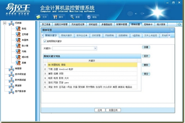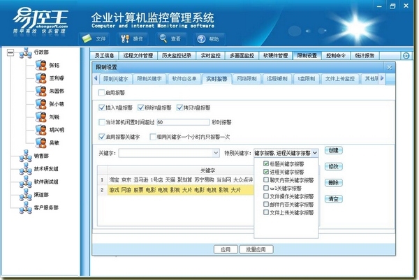 功能强大,彻底监控员工使用计算机的所有操作内容;