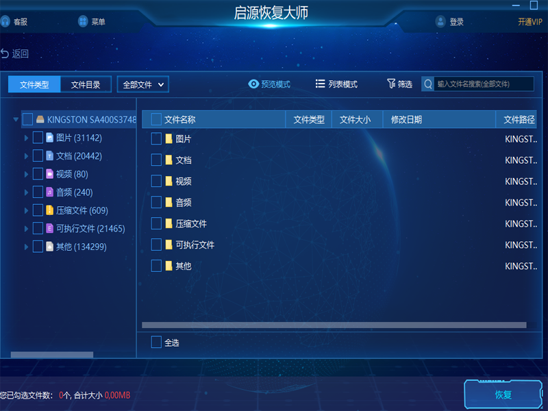 启源恢复大师是一款专业数据恢复软件,启源恢复大师可以恢复误删除的文件,误清空的回收站也能恢复,格式化后的分区数据同样可以恢复,启源恢复大师支持不同的恢复类型。
