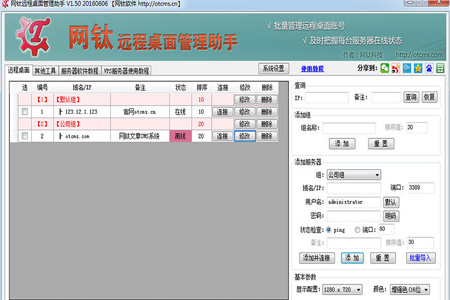 网钛远程桌面管理助手是一款专业的远程管理桌面的软件工具,软件支持分组管理桌面账号密码、excel批量导入、服务器信息快速查询等功能。非常方便快捷,软件界面简约,布局直观清晰。操作简单,容易上手,是一款十分实用的工具。