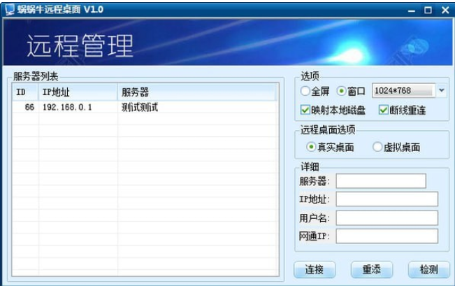 蜗蜗牛远程桌面是一款专业的远程管理控制桌面的软件工具,软件支持自定义连接选项包括是否映射本地磁盘、是否断线重连等。非常方便快捷,软件界面简约,布局直观清晰。操作简单,容易上手,是一款十分实用的工具。