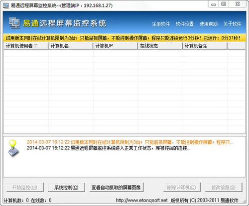 管理端IP:由于软件采用自动上线方式,被控端将自动根据安装时所设置的管理端程序所在计算机的IP地址自动连接管理端。