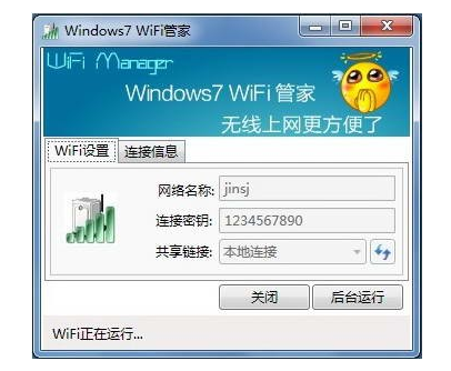下载WIFI管家是一款专业的电脑共享网络的软件工具,软件可以为你的带无线网卡的电脑新建一个wifi热点供其它设备连接上网。非常方便快捷,软件界面简约,布局直观清晰。操作简单,容易上手,是一款十分实用的工具。