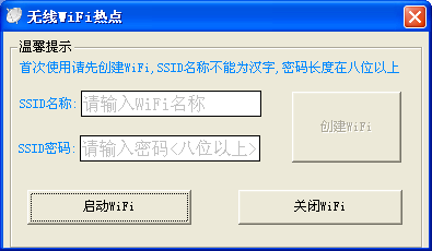 无线wifi热点是一款专业的wifi热点创建的软件工具,软件可以通过电脑的无线网卡新建一个wifi热点供其他设备连接上网使用。非常方便快捷,软件界面简约,布局直观清晰。操作简单,容易上手,是一款十分实用的工具。