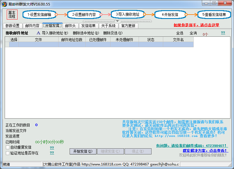 支持超大量邮件群发,可以一次发送数亿封,邮件地址以文件形式导入,快捷方便。