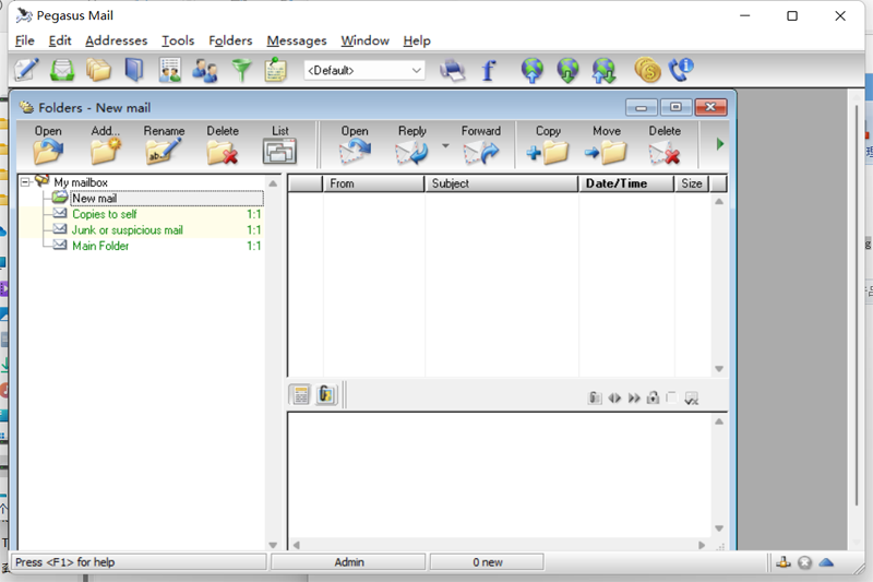 使用Pegasus Mail,你明显的感觉它的界面与众不同:所有的图标都是那种古老的样式,想理解图标的功能恐怕只有自己去尝试了。这是Pegasus Mail最大的缺点。