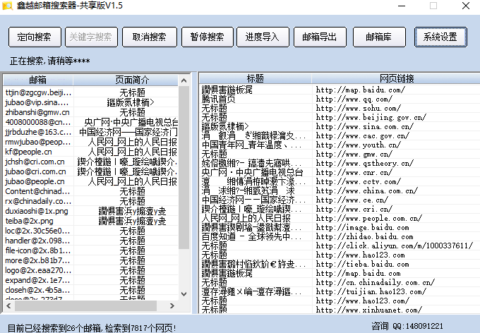 搜索到的邮箱的同时会把包含该信箱的网页主题检索出来,这样,您可以根据主题来划分邮箱的属性,例如所在网页是属于那类的,哪个行业等。
