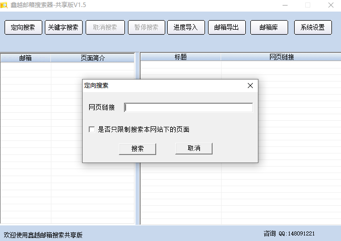 下载鑫越邮件搜索器电脑版是一款专业的邮件辅助的软件工具,软件支持邮件搜索包括制定网站搜索或指定关键字搜索。非常方便快捷,软件界面简约,布局直观清晰。操作简单,容易上手,是一款十分实用的工具。