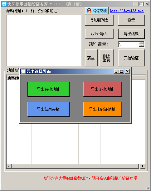 验证邮箱地址是否真实存在的工具,可以批量导入,批量验证。