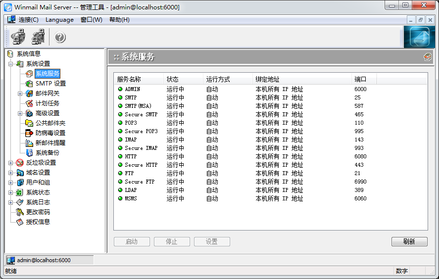 支持 Web 管理, 管理员可以进行在网页上在线管理系统的邮箱和域名。