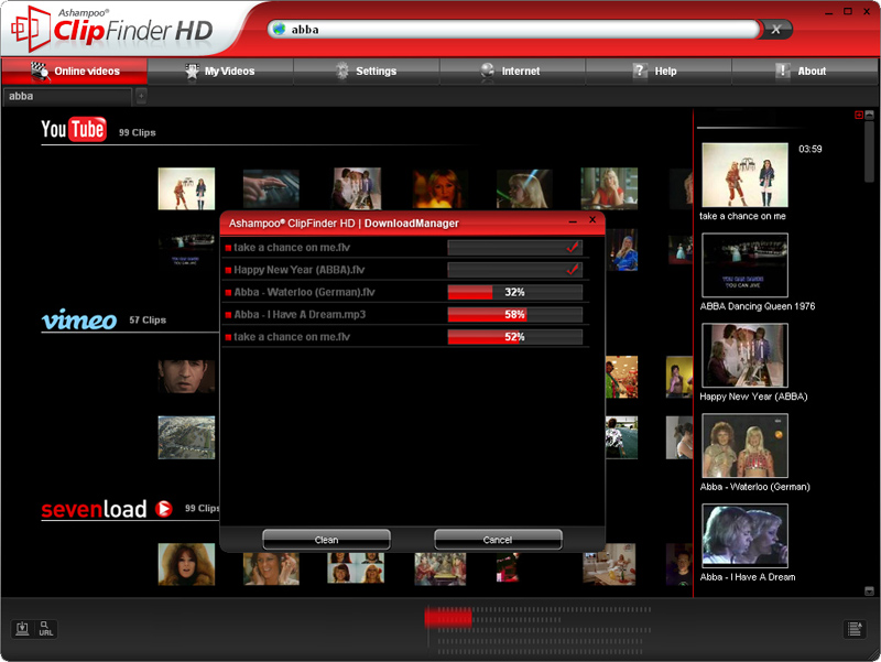 全新的 Ashampoo ClipFinder HD 还 Web 视频以真身。可同时在多达 15 个视频门户或在选定门户中搜索视频,然后可直接观看视频,也可单击一次鼠标以轻松地转换视频格式并将其保存到硬盘上。