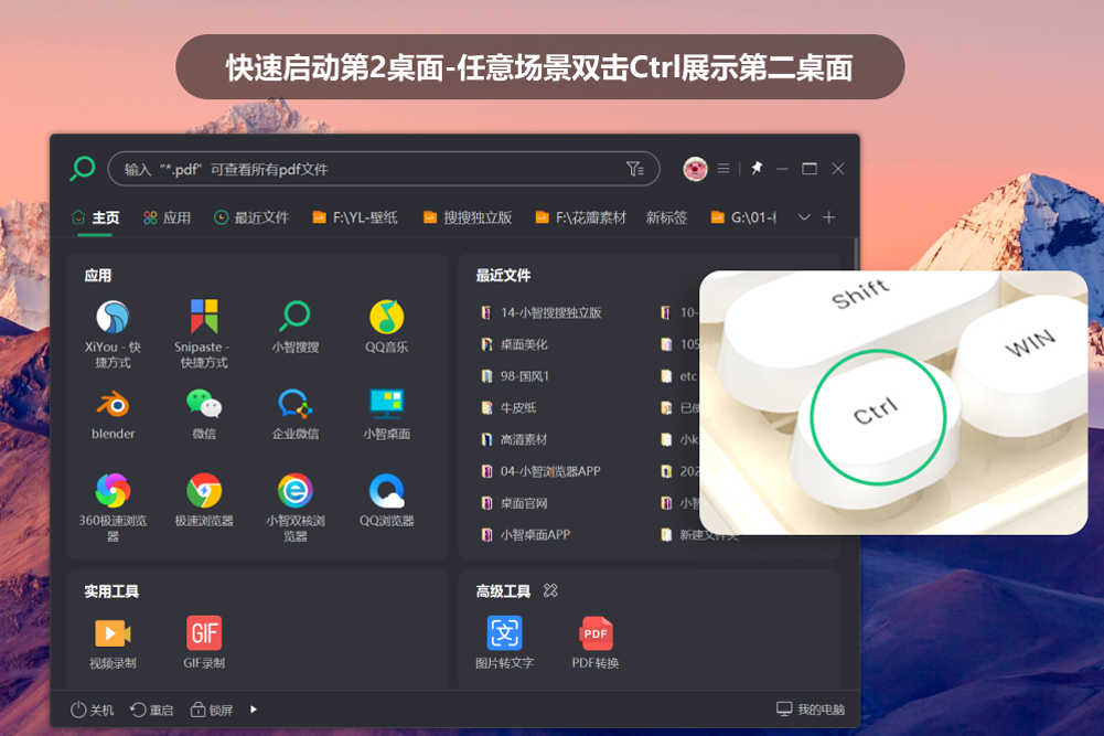 小智搜搜是一款专业的桌面搜索软件工具,软件支持搜索任意本地内容和网络内容、快速启动、打造个人资源库等功能。非常方便快捷,软件界面简约,布局直观清晰。操作简单,容易上手,是一款十分实用的工具。