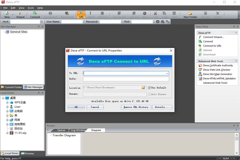 Deva xFTP除了传输和网络管理功能外,在主程序上集成了几个相对独立的功能模块,用户可以很方便的使用这些工具。CA类似一个数字证书中心,可以快速制作各种格式的数字证书、秘钥文件,也可以利用它成立数字证书中心管理大量的安全证书文件。Link checker 可以验证网站中的死链和废弃的孤儿文件,工具本身可以产生详细的结果报表。Sitemap generator能同时制作几种不同格式的网站sitemap,包括google sitemap, ROR sitemap, HTML 和 .txt, 工具支持大文件sitemap自动分割和gzip压缩。HTML/XHTML validator用于验证网页的语法错误。
