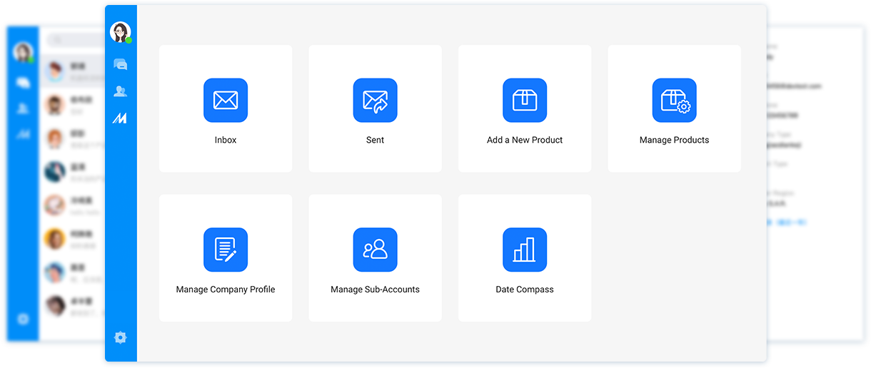 麦通客户端实现了多平台帐号关联,不论您是做外贸、内贸,还是做采购、销售,不同的贸易沟通需求,一个帐号全搞定。