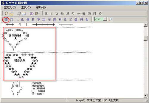 易用的开发工具:具备完善的所见即所得字符画创作功能,使您方便而简单的创造出自己的字符画。